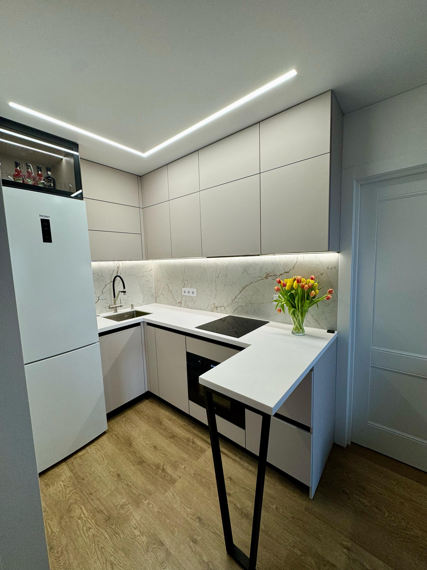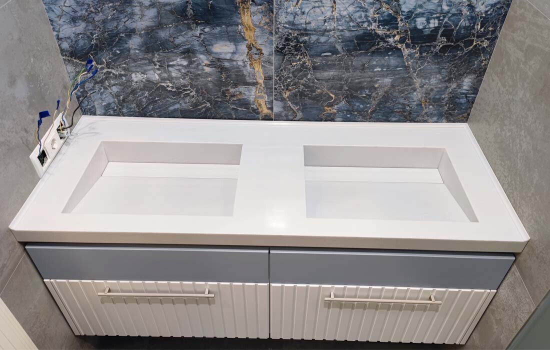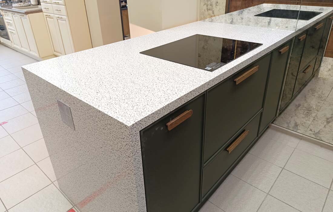 Столешница из кварцевого агломерата толщиной 20мм с подстольной мойкой